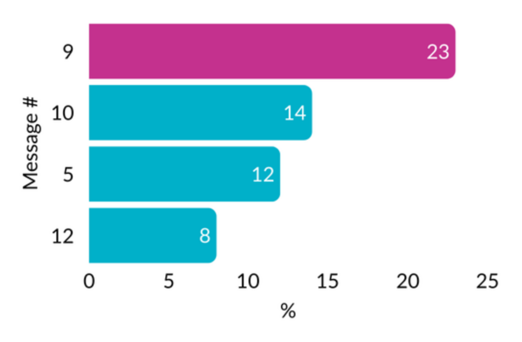 From those hundreds of micro-choices, we calculate Preference Share—a number that shows how often each message rose to the top.